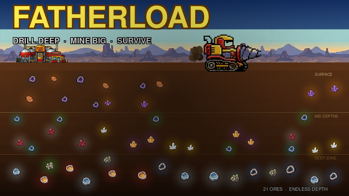 You pilot a drilling pod into the earth, blasting through rock and dirt in search of precious ores. The deeper you go, the more valuable your haul — but your fuel drains every second, and a hard landing will crack your hull.